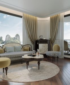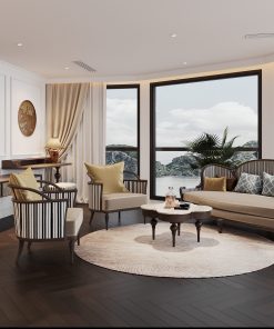 - 01 đêm trải nghiệm du thuyền sang trọng Capella lịch trình 2 ngày 1 đêm Lan Hạ – Hạ Long tại phòng ngủ hạng sang, có ban công riêng và bồn tắm hướng vịnh.